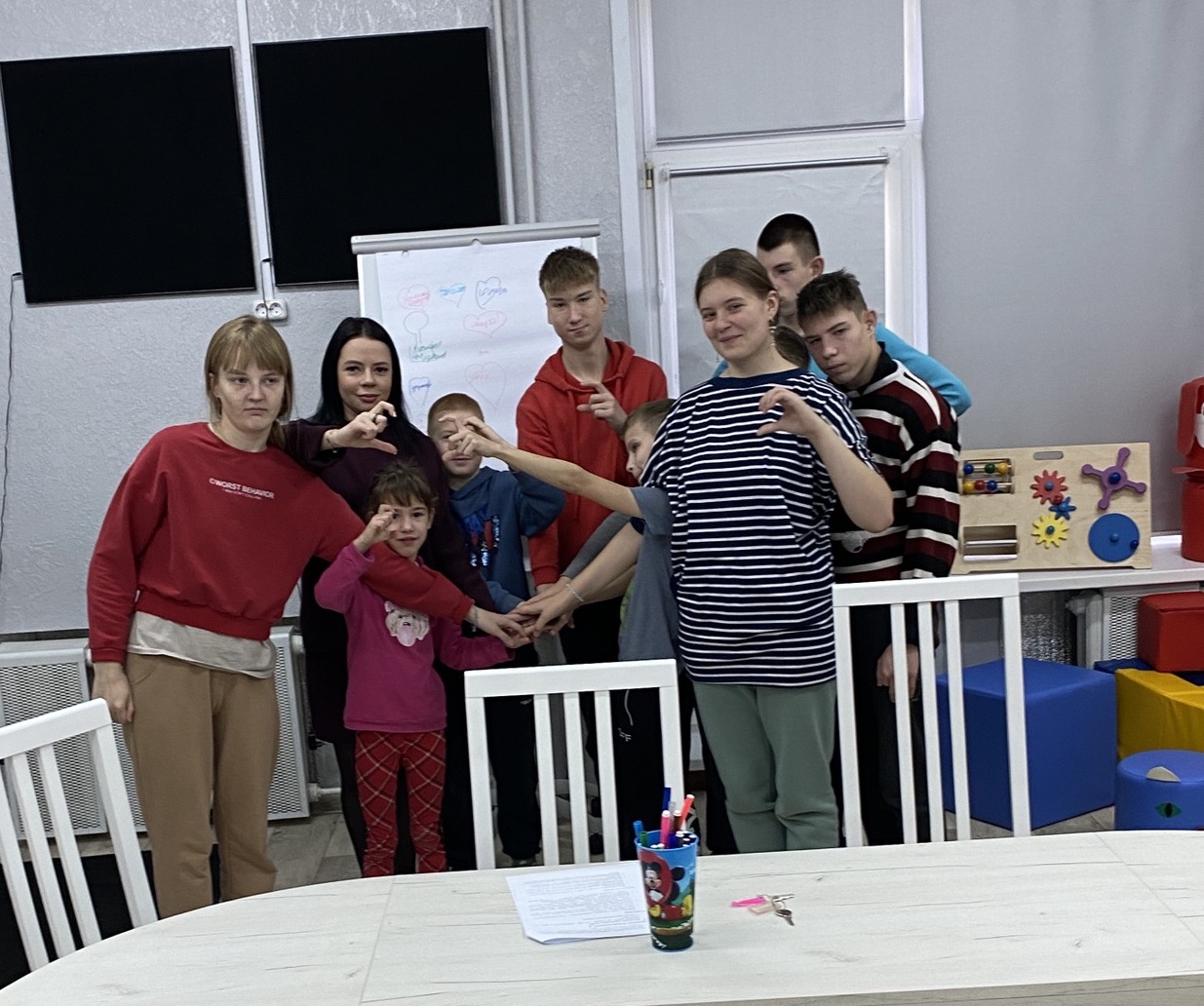 08.11.2025Тренинговое занятия на сплочение коллектива «Сила круга» прошло в сенсорной комнате детского дома. Его цель — создать условия для формирования и укрепления позитивных межличностных связей, развития доверия, взаимопонимания и чувства принадлежности к группе.